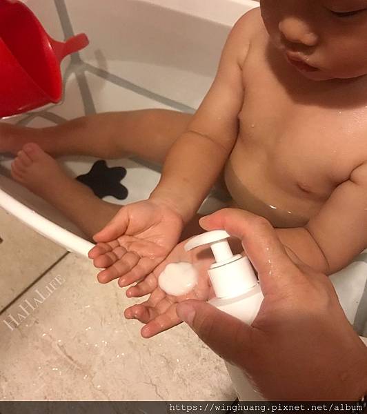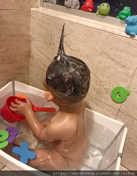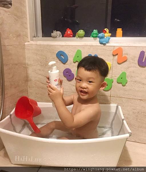 覺得溫和不刺激我才會讓他開心玩耍洗澡~